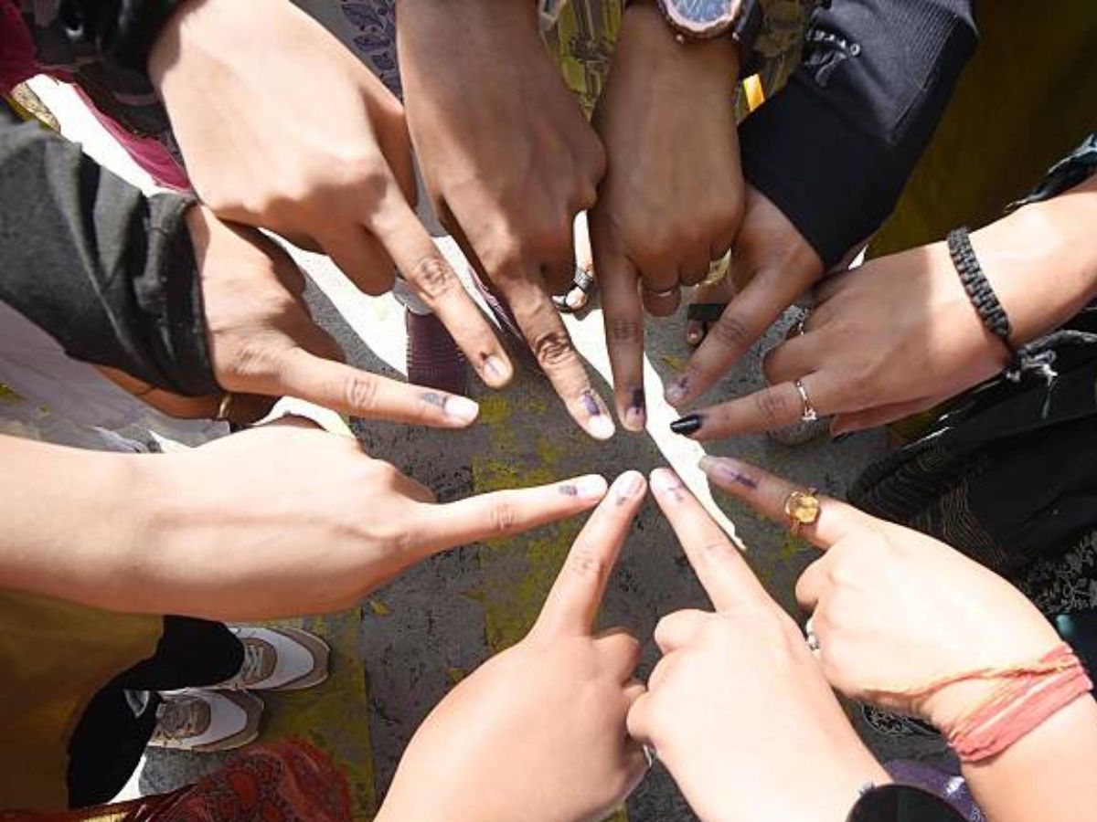 Young voters vote for the first time; they can be seen proudly marking voting ink on the tops of their fingers.