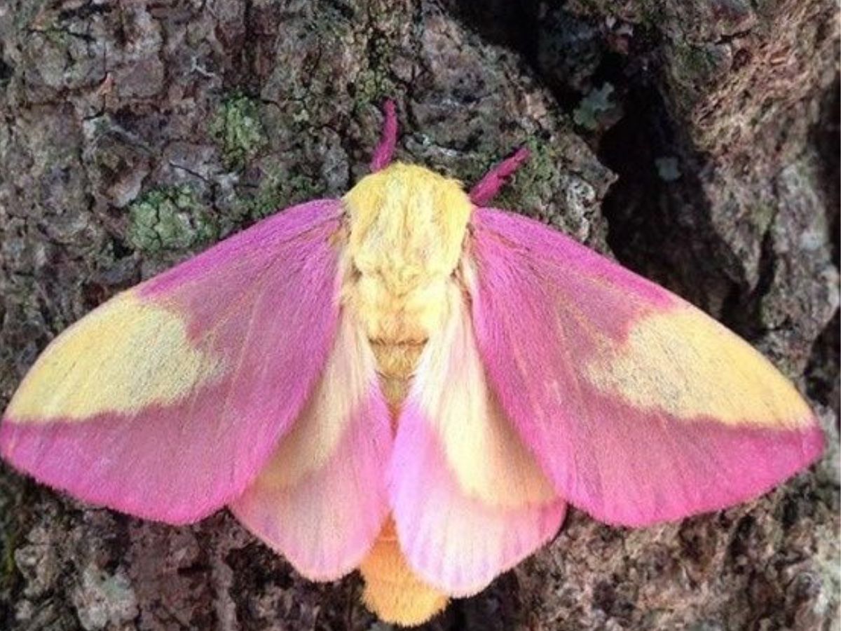 The rosh maple moth is a stunning insect with a vibrant pink and yellow body. Found in North America, these moths are known for their bright colors and fuzzy bodies. From the maple leaves, they get their distinctive color.