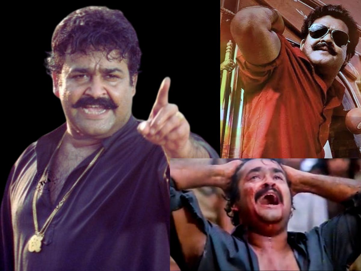In Spadikam (1995), Mohanlal shines as Aadu Thoma, a misunderstood rebel clashing with societal norms and his father’s rigid expectations. His intense performance, blending raw energy with deep emotion, made the character an unforgettable cult classic in Malayalam cinema. (Photo: X/@povs_rahul,@Mathewsputhren)