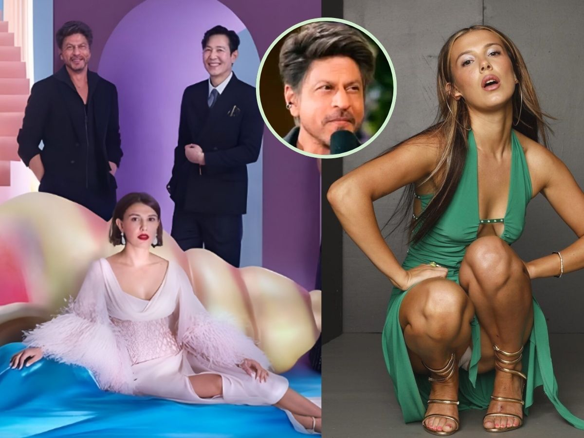 The same set of pictures included Millie Bobby Brown and Oscar Isaac at the event. Netizens were surprised to see SRK standing with such major Hollywood stars together.